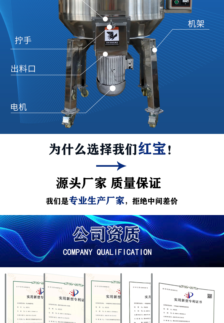 歡迎進(jìn)入廣東紅寶機(jī)械科技有限公司 主營產(chǎn)品:臥式/立式塑料攪拌機(jī)